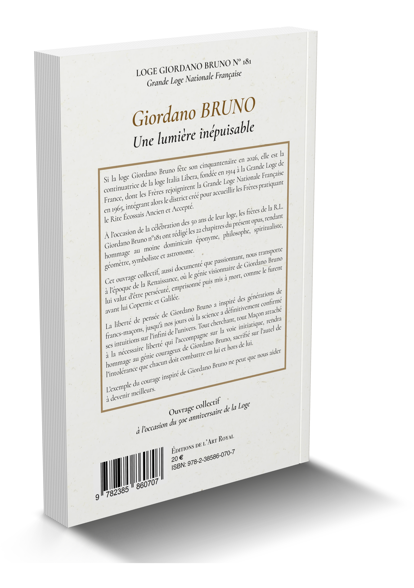 À l’occasion de la célébration des 50 ans de leur loge, les frères de la R.L. Giordano Bruno n°181 ont rédigé les 22 chapitres du présent opus, rendant hommage au moine dominicain éponyme, philosophe, spiritualiste, géomètre, symboliste et astronome.